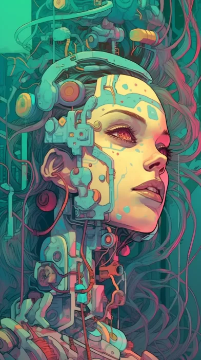 Fusion of Cyborg and Black Widow, machinecore, heroic p...Re